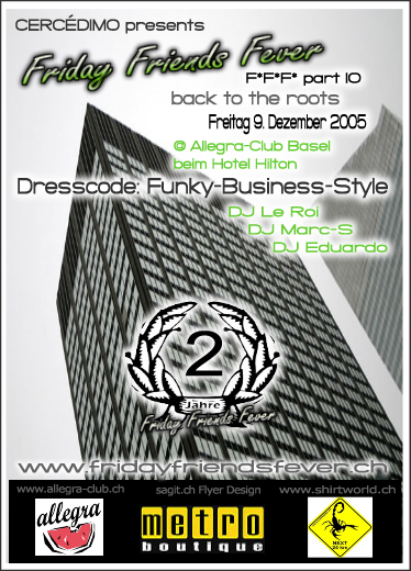 Freitag, 16. Januar 2009 SwingTime Gratis Crash Kurs für unsere Gäste: 20:00h bis 21:00h Boogie-Woogie mit Stepfan & Angela www.tickletoe.ch 21:00h bis 03:00h Swing mit DJ Chrigi www.boogiefeet.ch Ab 02:00h Gratis Eintritt mit dem Museumsnacht-Ticket www.museumsnacht.ch ![]() |