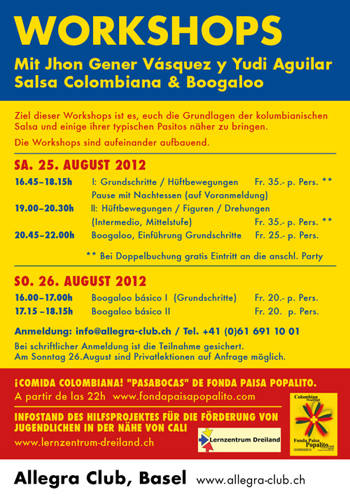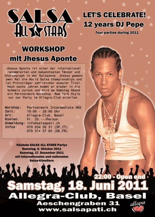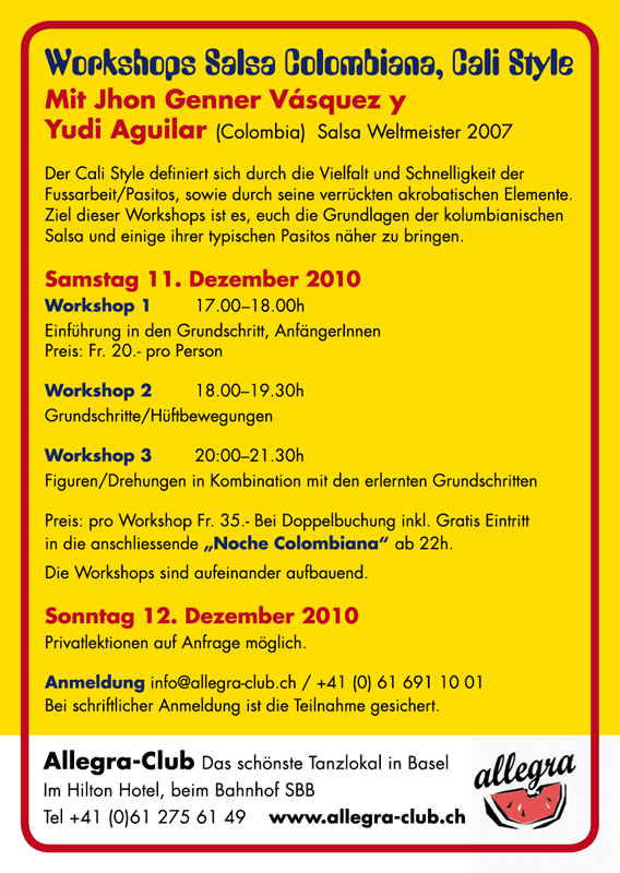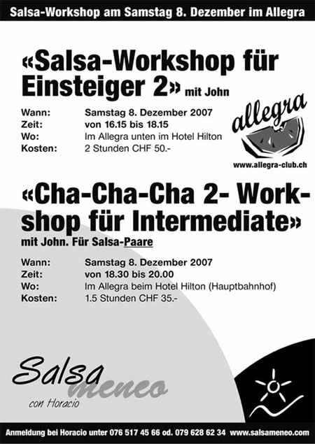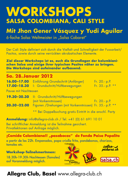 detailliertes Programm und weitere Infos siehe www.salsapati.ch ![]() ![]() Workshop Anmeldungen www.salsapati.ch |